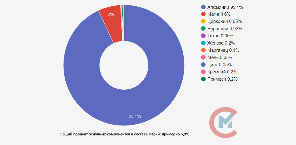 • Алюминий (Al) 92,05-93,88%