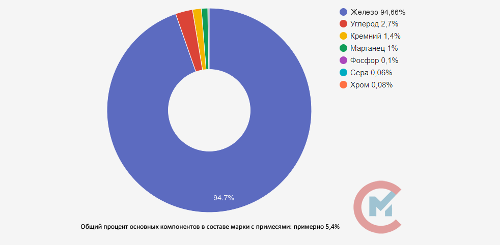 Расшифровка обозначения данной марки: КЧ – ковкий чугун; 65 – показатель временного сопротивления разрыву; 3 – значение параметра относительного удлинения. Класс сплава указывается дополнительно: П – перлитный, Ф – ферритный.